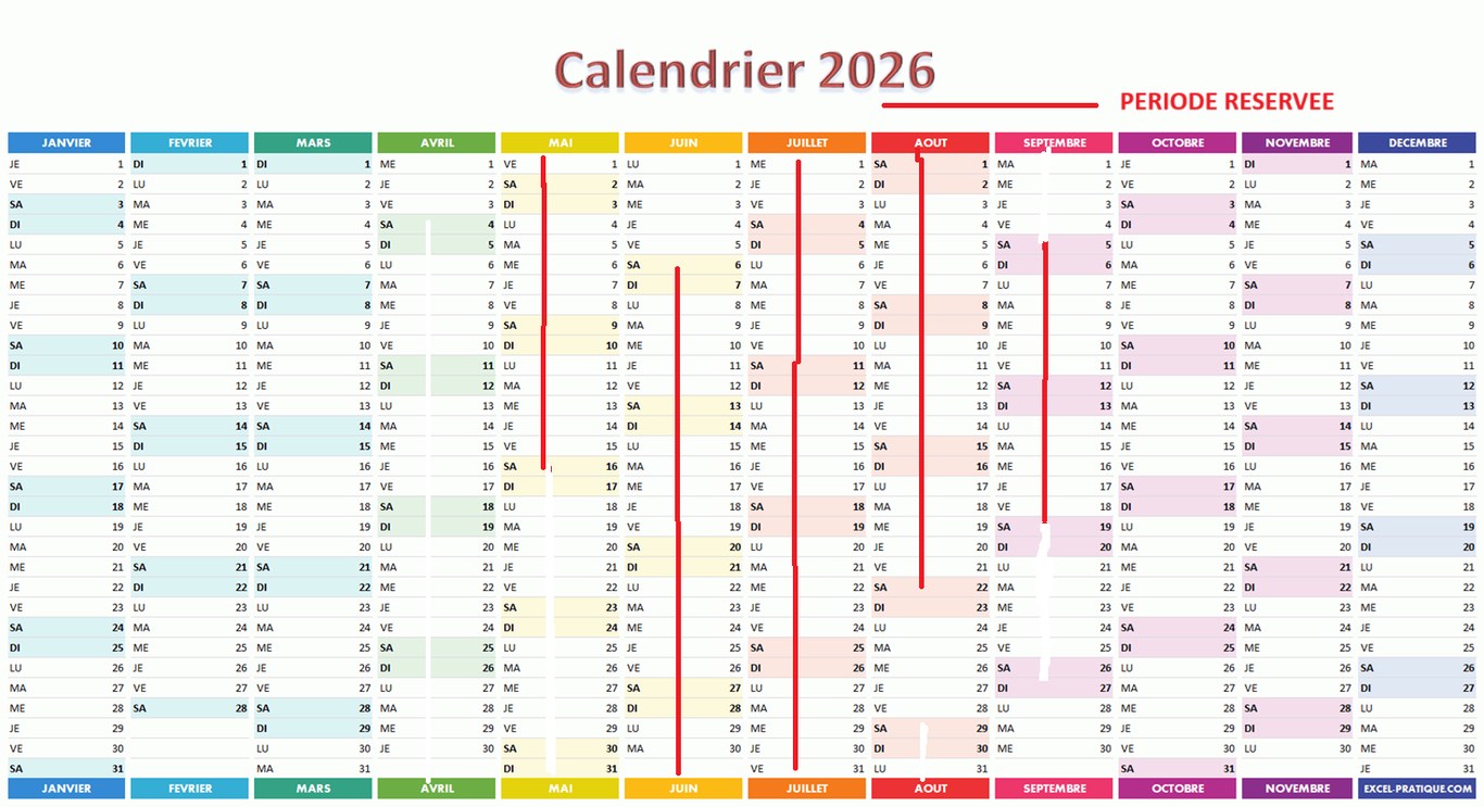 Pour les mois de Juillet et Août , les réservations se font à la quinzaine et plus uniquement.